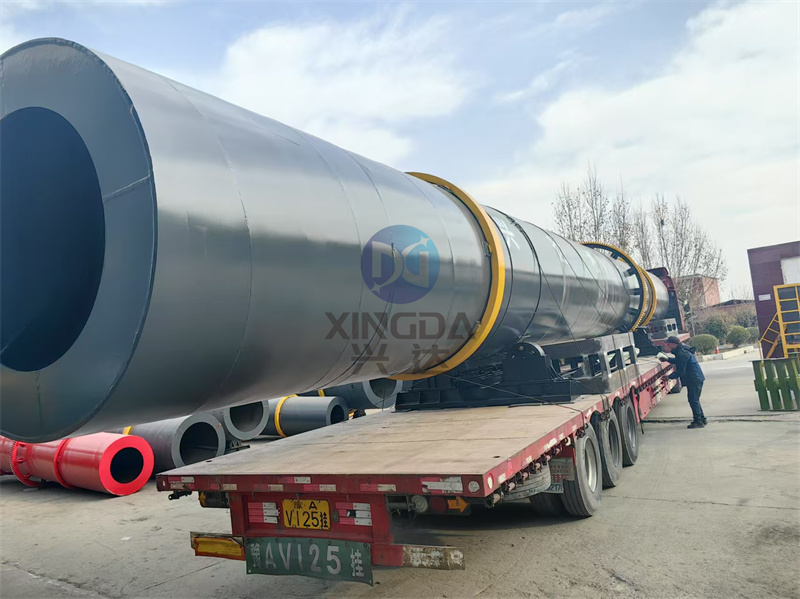 顆粒有機肥生產(chǎn)線設備有機肥回轉(zhuǎn)式烘干機已制作完畢正在裝車中