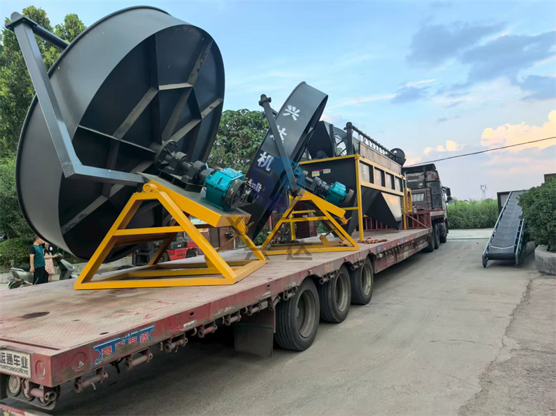 一車發(fā)往遼寧的顆粒有機(jī)肥生產(chǎn)線設(shè)備2臺3.2米圓盤造粒機(jī)準(zhǔn)備出貨: