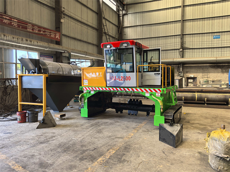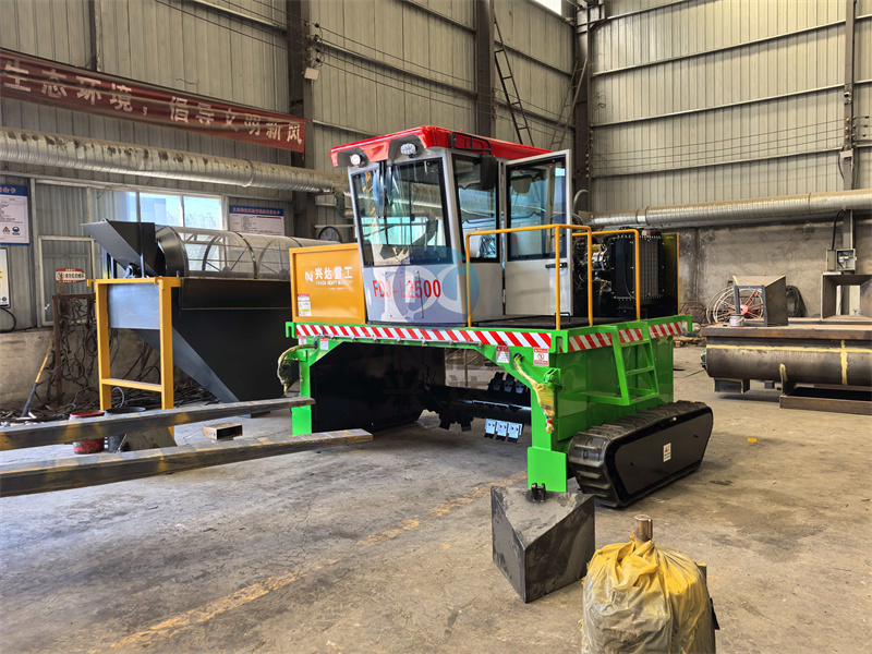安徽又定購一臺有機(jī)肥履帶翻拋機(jī),準(zhǔn)備開始裝車:履帶翻堆機(jī)通常由動力系統(tǒng)、傳動裝置、翻拋機(jī)構(gòu)和控制系統(tǒng)組成。動力系統(tǒng)一般采用柴油發(fā)動機(jī)或電動機(jī),提供足夠的動力以驅(qū)動履帶和翻拋機(jī)構(gòu)工作。傳動裝置則負(fù)責(zé)將動力傳遞到各個工作部件,確保設(shè)備運(yùn)行平穩(wěn)可靠。翻拋機(jī)構(gòu)是核心部分,通過旋轉(zhuǎn)的刀片或耙齒將有機(jī)